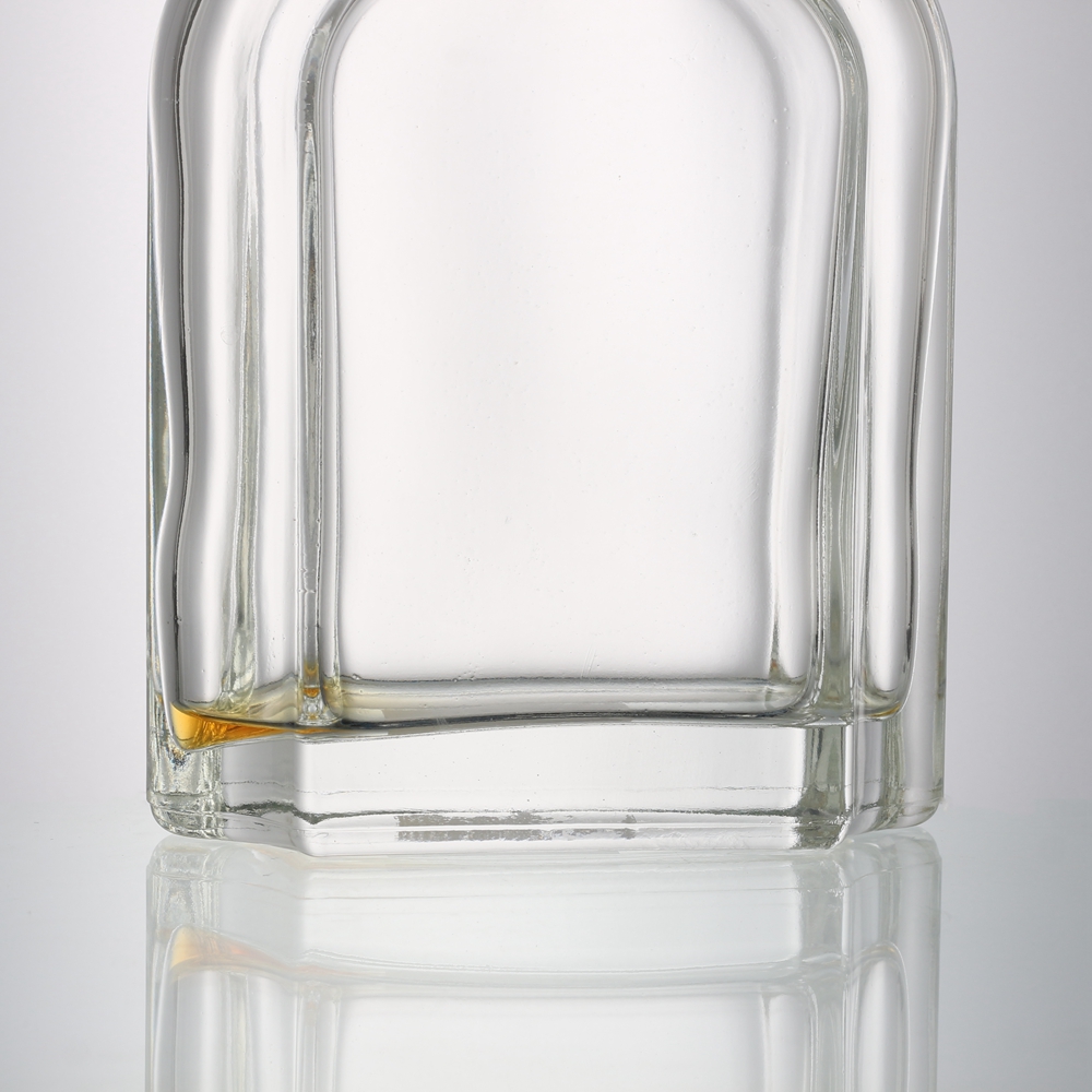 This Customized 700 ml clear flat liquor whisky glass bottles with wide shoulders and come with a cork finish. This bottle has a hybrid finish which can accept cork or bartop. this liquor bottles are made of super flint glass and BPA Free .