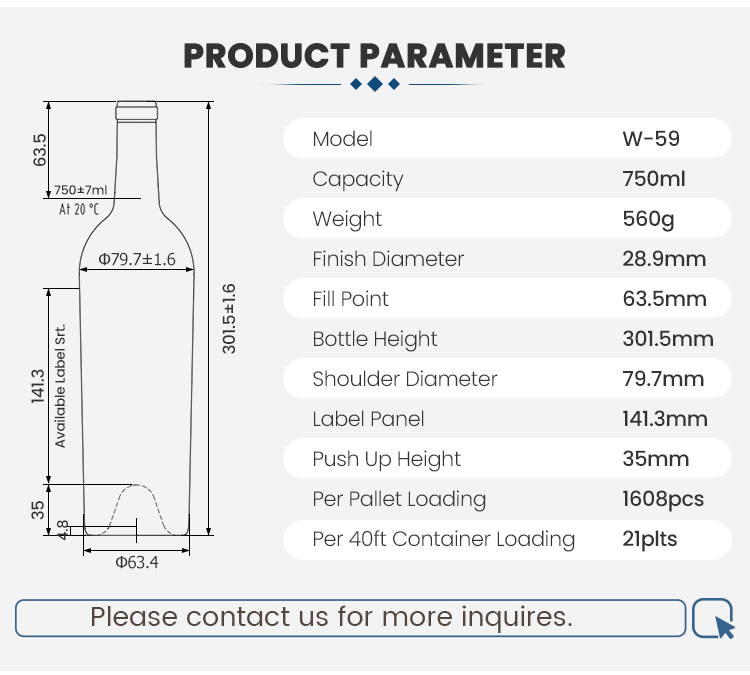 W-59 750ml Wine Glass Bottle